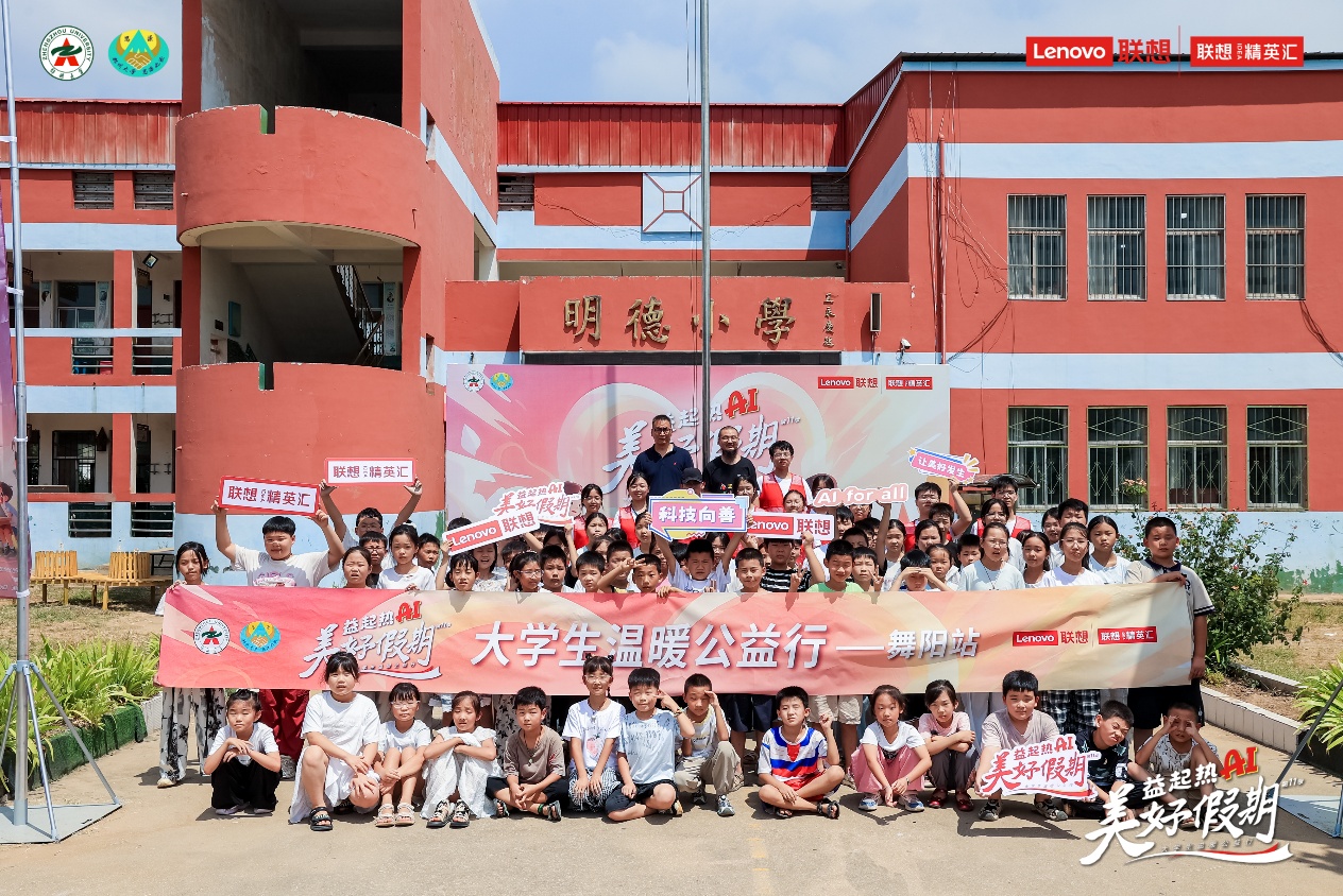 8月15日,來自鄭州大學(xué)的聯(lián)想“美好假期”大學(xué)生志愿者們背上愛心包裹,走進(jìn)舞陽縣明德小學(xué),將美好傳遞給明德小學(xué)的莘莘學(xué)子,以AI科技助力鄉(xiāng)村教育發(fā)展,用行動詮釋新時...