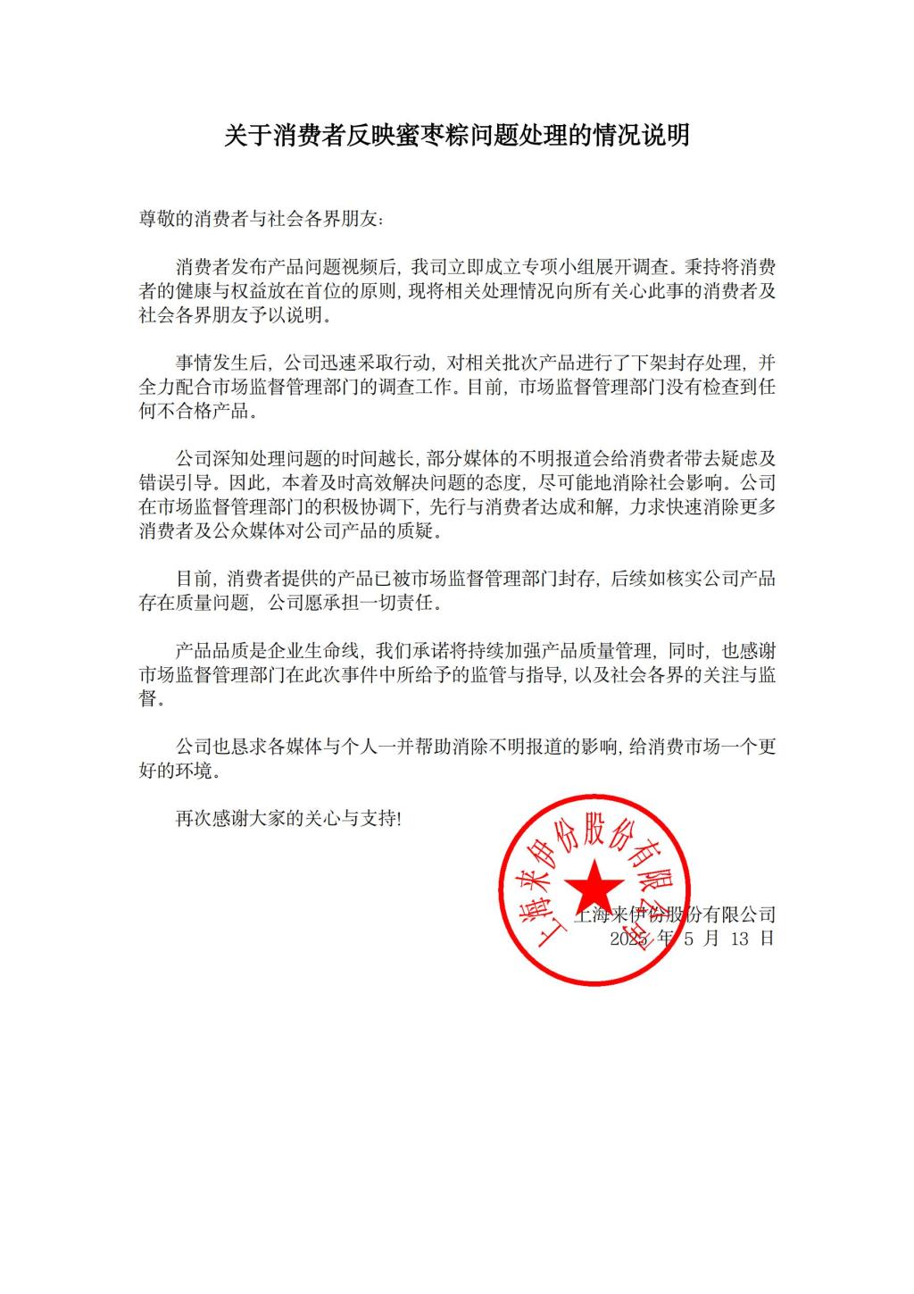 據(jù)媒體報道,5月10日,有江蘇的消費(fèi)者發(fā)視頻稱,在來伊份的粽子中吃出疑似帶血創(chuàng)可貼的異物,并要求來伊份官方給一個明確的回應(yīng)。該消費(fèi)者在視頻中表示,給小孩喂粽子,在里...