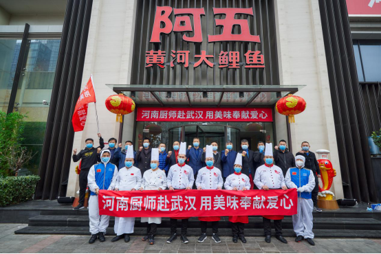 樊勝武說,人這一輩子就是要挑戰(zhàn)自己,作為企業(yè)家更是在不斷地迎接挑戰(zhàn)。 他的一生,從農(nóng)村到城市、從廚師到開店、從阿五美食到阿五黃河大鯉魚,每一次都是在勇敢地突破自己。 這種勇敢的品質(zhì)不僅體現(xiàn)在樊勝武身上,在他企業(yè)的員工身上也體現(xiàn)的淋漓盡致。 就在今年抗擊新冠疫情的行動(dòng)中,鄭州市餐飲與飯店行業(yè)協(xié)會(huì)共派出六名廚師、籌集三十余萬元物資援助武漢。