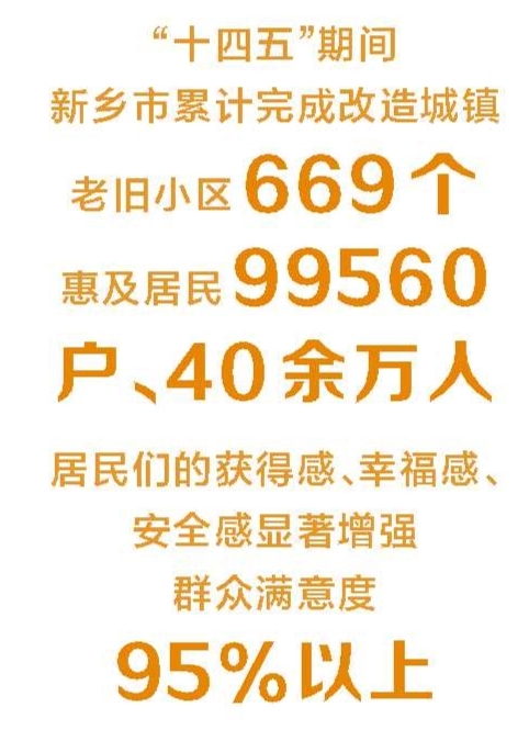 據(jù)統(tǒng)計,“十四五”期間,新鄉(xiāng)市累計完成改造城鎮(zhèn)老舊小區(qū)669個,惠及居民99560戶、40余萬人。居民們的獲得感、幸福感、安全感顯著增強,群眾滿意度95%以上。