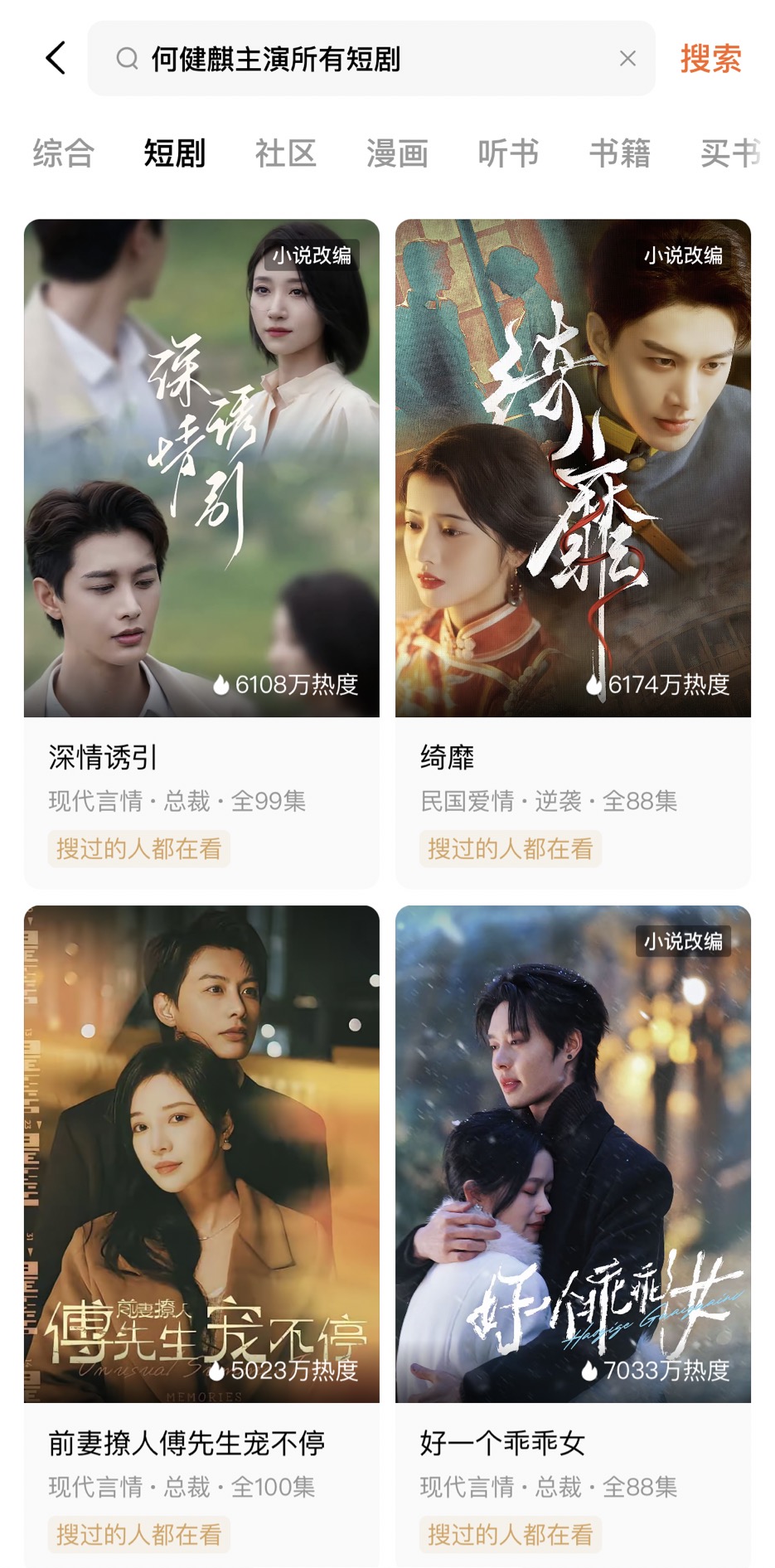 3月4日晚,短劇頂流何健麒被中國電視劇制作產(chǎn)業(yè)協(xié)會青年工作委員會(以下簡稱“青工委”)列入“微短劇劣跡演員”名單。大河報(bào)《看見》記者注意到,何健麒參演的作品仍能在